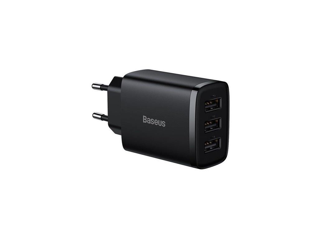 Napájecí nabíječka se třemi porty USB-A. Navrženo tak, aby fungovalo s většinou populárních zařízení napájených přes USB, jako jsou iPhony a telefony se systémem Android.