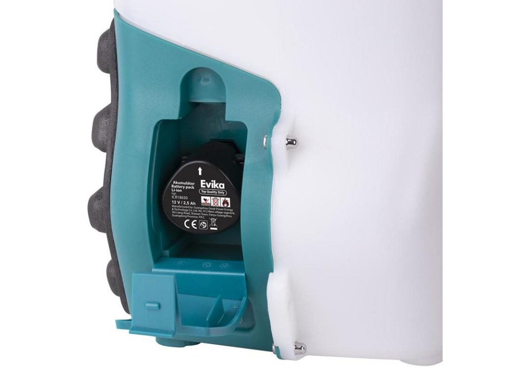 POPISAkumulátorový zádový postřikovač umožní provádění postřiků bez zbytečného zdržování ručním tlakováním nádrže.Voděodolný spínač.Snadná manipulace s nasazením / výměnou akumulátoru.Kovová teleskopická tyč.Integrovaný držák tyče.Použití v zemědělství, v zahradnictví.SPECIFIKACEObjem: 10 lTlak: 2,5 barNapětí: 12 VDoba nabíjení: 150 minProud: 0,75 AKapacita akumulátoru: 2,5 AhNepřetržitý provoz: 210 minPrůtok: 1,15 l/minHmotnost: 2,75 kgPŘÍSLUŠENSTVÍ1x akumulátor 2,5 Ah1x nabíječka1x popruhy