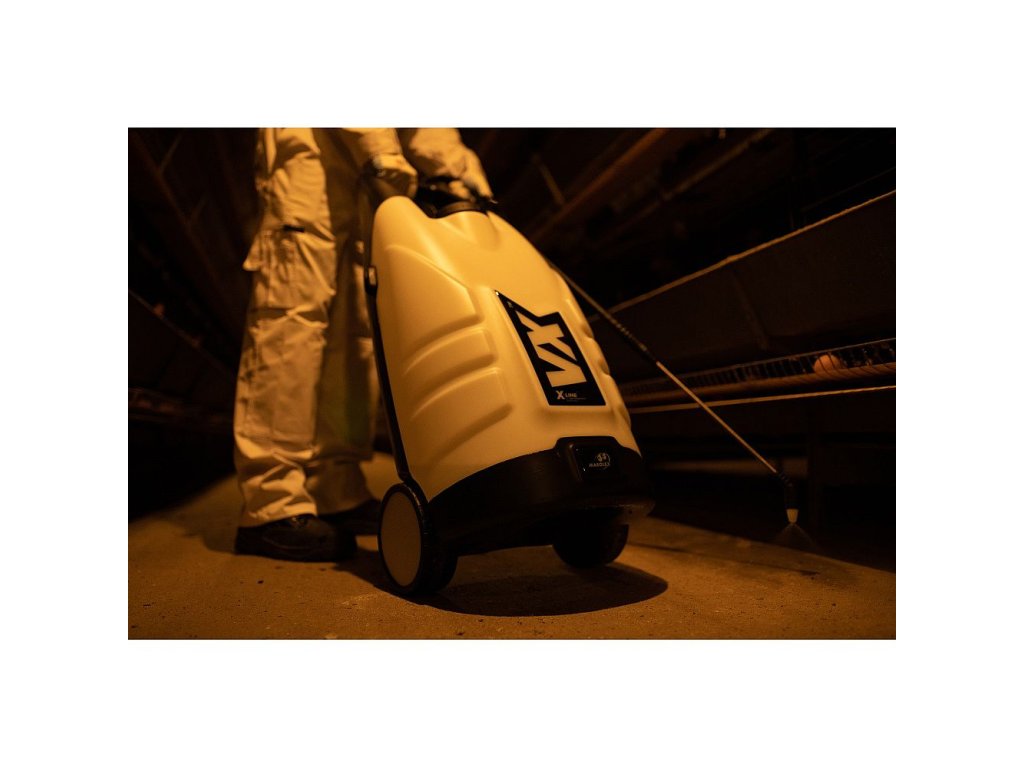 POPIS Akumulátorový vozíkový postřikovač VX alka line s těsněním EPDM je příkladem extrémně přesně a optimálně navrženého zařízení. Vyměnitelná baterie umožňuje dlouhou 5 hodinovou provozní dobu s možností prodloužení. Extrémně nízká hladina hluku a absence výfukových emisí, díky nimž je akumulátorový vozíkový postřikovač VX alka vhodný pro uzavřené prostory. Mezi další výhody patří dlouhá 2,5 metrová hadice a teleskopická násada. Dezinfekce strojů a zařízení Pomocí 20litrového vozíkového postřikovače na baterie snadno dezinfikujete i velké výrobní haly. Dezinsekce Vozíkový postřikovač bude perfektně fungovat, když je třeba provádět dezinfekci na velké ploše. Kapacita 20 litrů a dlouhá výdrž baterie umožní pohodlnou práci, aniž byste museli postřikovač zvedat. Aplikace čistících prostředků Zaměstnanci myčky aut si oblíbili postřikovač vx na baterie. Jeho velká kapacita v kombinaci s dlouhou hadicí umožňuje pohodlnou aplikaci aktivních látek na karoserie automobilů bez čerpání a nutnosti neustálého doplňování mycích prostředků. POUŽÍVANÁ ŘEŠENÍ PRODUKTŮ Ochrana proti prachu (APS System) Všechny teleskopické nástavce jsou vybaveny ochranou proti prachu APS, aby se zabránilo vniknutí nečistot do nástavce. Díky takovému řešení jsou považovány za jedno z nejspolehlivějších zařízení tohoto typu na trhu. Zámek dávkovacího ventilu Dávkovací ventil integrovaný s rukojetí Marolex umožňuje pohodlnější práci. Zámek snižuje namáhání svalů ruky při dlouhé práci s postřikovačem. Stisknutím a posunutím tlačítka dávkovacího ventilu dopředu jej uzamknete v otevřené poloze, aniž byste museli tlačítko držet. Třívrstvá zesílená hadice Všechny hadice v postřikovačích jsou vybaveny dodatečnou vnitřní výztuhou, zvyšující odolnosti vůči tlaku a vnějším faktorům. Hadice jsou odolné proti ohýbání, praskání a natahování. Třívrstvá konstrukce je kvalitní bez kompromisů. Široká odolná kola Široká a odolná kolečka zaručují stabilitu a pohodlný pohyb na různých površích. Propracovaná do všech detailů povrchová struktura kol zajišťuje, že postřikovač neuvízne v sypké půdě nebo neklouže po mokré trávě. Tryska s regulací proudu Trysky v našich postřikovačích mají plynulé nastavení úhlu rozstřiku od velmi širokého až po jeden proud. Vše, co potřebujete, je jedna tryska, kterou lze použít pro zavlažování i zamlžování. Okamžité nabíjení Moderní baterie jsou připraveny k použití, kdykoli je potřebujete. Rychlonabíječka omezuje dobu nabíjení na nezbytné minimum. Mikroprocesorové řízení Řízení, zabezpečení a optimalizace - to vše v našich postřikovačích řídí mikroprocesor. Díky pokročilým algoritmům postřikovače využívají baterie efektivněji a šetří energii, takže můžete pracovat déle. Napájení z lithium-iontových baterií Postřikovače se vyvíjejí společně s nejmodernější technologií, proto používáme nejmodernější zdroje energie. Lithium-iontové baterie byly vytvořeny tak, aby minimalizovaly hmotnost a využívaly dostupnou energii co nejefektivněji. SPECIFIKACE Celková kapacita: 22 l Pracovní kapacita: 20 l Tlak: 0,38 MPa Hmotnost: 8,2 kg Výška: 910 mm Tabulka chemické odolnosti postřikovačů MAROLEX