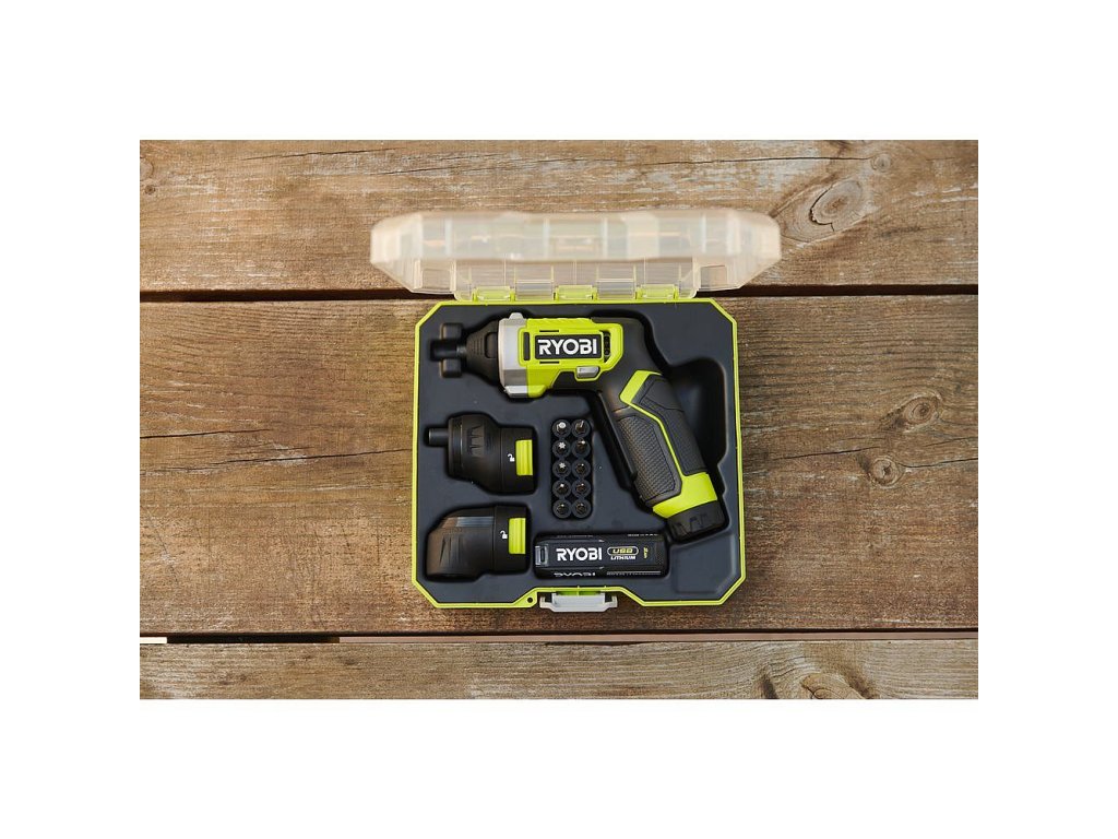 POPISIdeální pomocník v domácnosti, který si poradí s různými úkoly jako je např. montování nábytku.Šroubovák je napájen akumulátorem USB Lithium, který je kompatibilní s ostatními nástroji této řady.Obsahuje 10 bitů.Maximální točivý moment je 5 Nm.Rychlovýměnné šestihranné sklíčidlo na snadnou výměnu bitů.Dodává se v odolném pevném pouzdře, které se skvěle hodí na uložení bitů a šroubů.Obsahuje LED světlo, které pomůže při práci v prostoru s horším osvětlením.Tento šroubovák je kompatibilní s jamkýkoli nástavcem hlavy od Ryobi ERGO.SPECIFIKACEPohon: AkuKapacita aku: 2,0 AhNapětí: 4 VTyp aku: Li-IonPočet dostupných aku: 1Kapacita sklíčidla: 6,35 mmMax. moment: 5 NmPočet otáček bez zatížení: 200 ot./min.Hmotnost: 0,37 kgPŘÍSLUŠENSTVÍ1x šroubovací nástavec1x pravoúhlý nástavec1x 2,0 Ah akumulátor (RB420)1x USB-C nabíječkaSada bitů 1x 10 ks (3x PH1, PH2, SL4, PZ1, PZ2, T20, T25, HEX4)Plastové pouzdro na nářadí