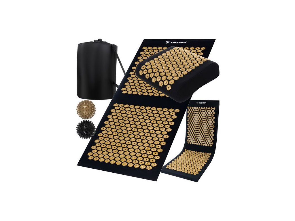 Akupresurní masážní podložka + polštářek a míčky Trizand 23375, černozlatá