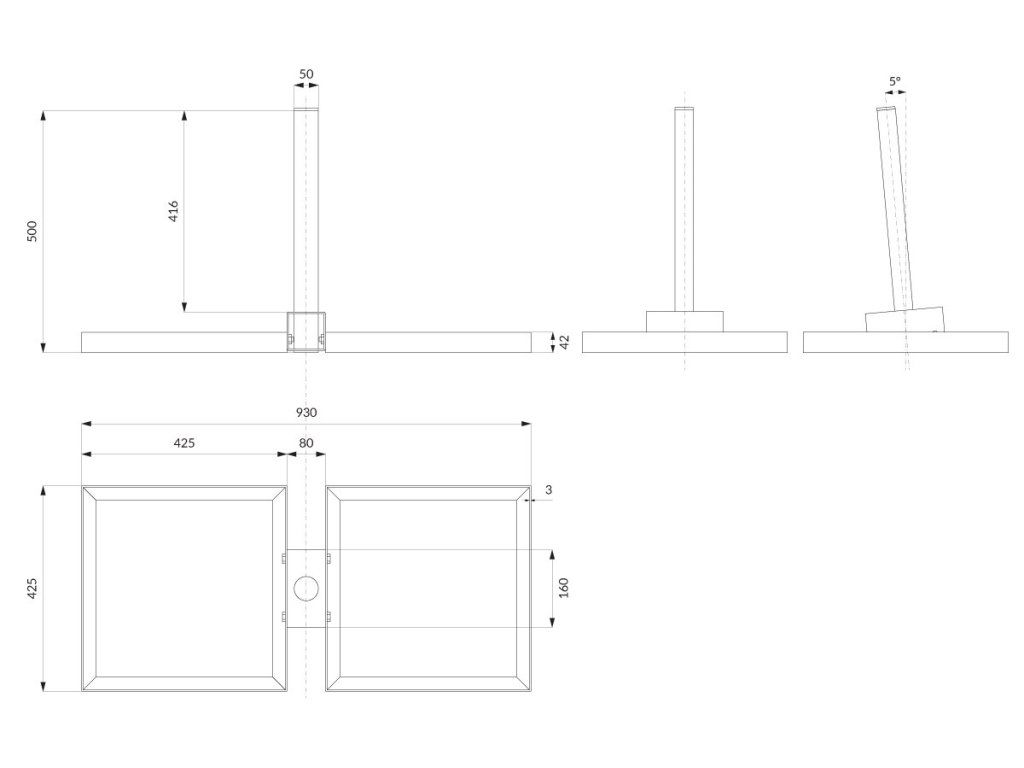 Držák je vybaven mechanismem umožňujícím plynulou regulaci úhlu sklonu stožáru vůči podkladu v rozmezí 0...5°. To umožňuje nastavit stožár ve svislé poloze na površích s mírným sklonem, což usnadňuje správnou montáž a zajišťuje stabilitu celé konstrukce.