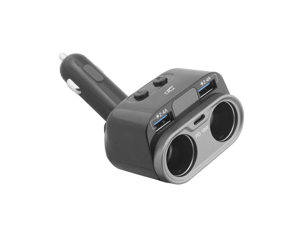Autoadaptér napájecí LTC LXTR230LTC adaptér CAR FIRE TR230, 2 zásuvky 150 W, 2 x USB 2,4 A + rychlá nabíječka typu C 18 W, 12/24 V.