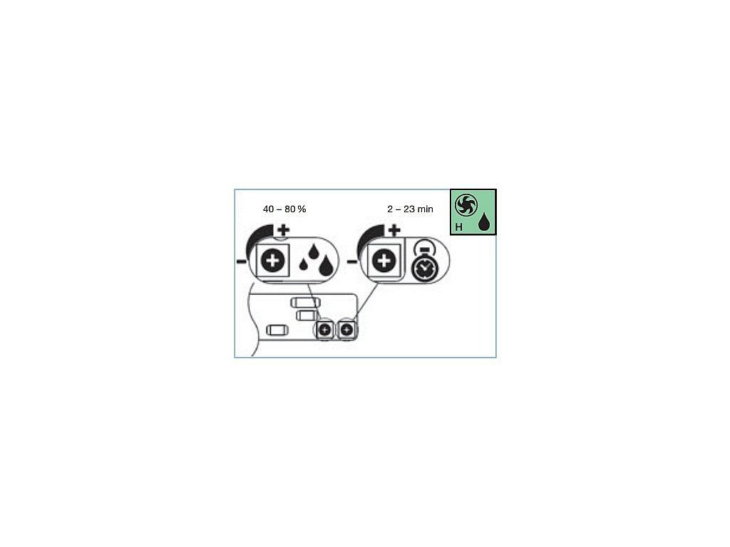 Varianta H - s čidlem vlhkosti v rozsahu 40 - 80% relativní vlhkosti a s časovým doběhem v rozsahu 2 - 23 min. Nastavení se provádí pomocí dvou trimrů na ovládací desce pod krycí mřížkou.