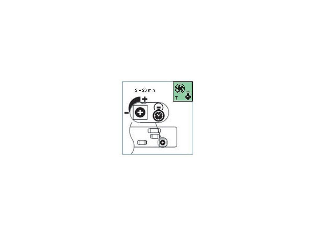 Varianta T - s časovým doběhem v rozsahu 2 - 23 min. Nastavení se provádí pomocí trimru na ovládací desce pod krycí mřížkou.