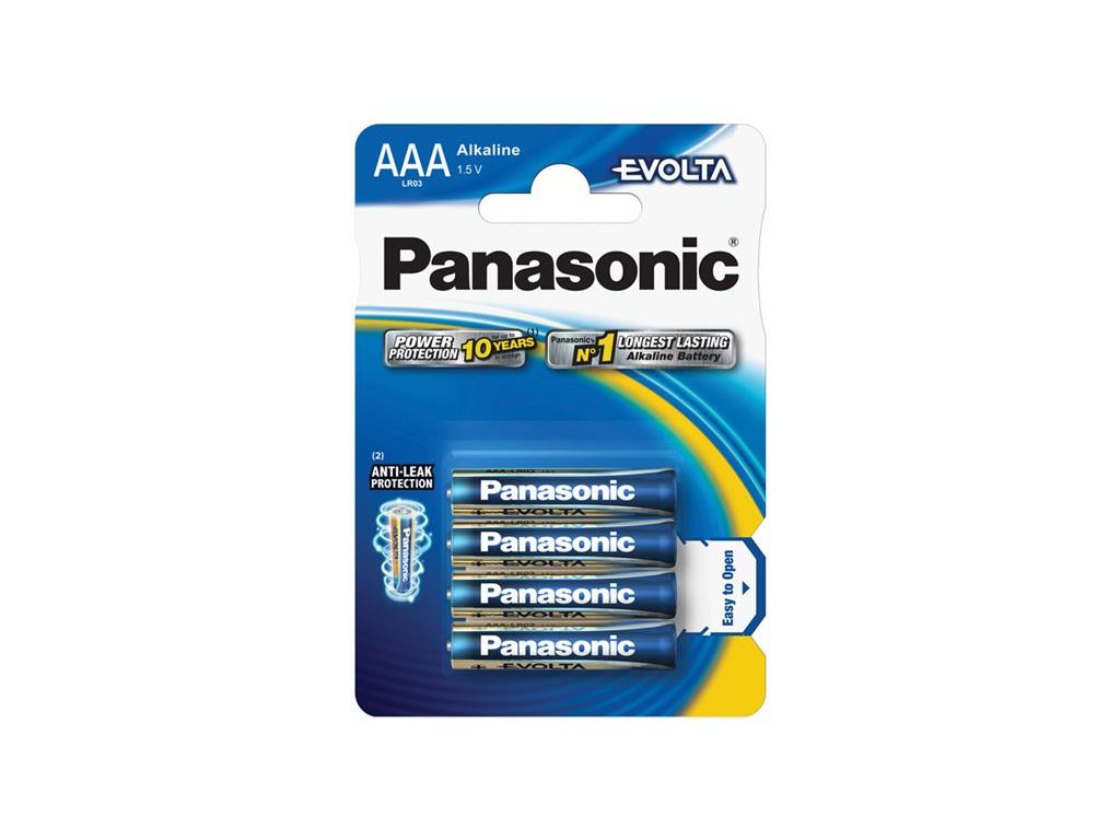 Baterie AAA (R03) alkalická PANASONIC Evolta 4BPNevýkonnější alkalická baterie Panasonic. Výjimečný výkon v zařízeních se střední a vysokou energetickou náročností. Řada alkalických baterií Hight Premium: svou koncepcí vyhovuje potřebám současných elektronických zařízení. Eco ideas: Vyšší energetická účinnost = potřebujeme méně baterií = ochrana přírodních zdrojů.