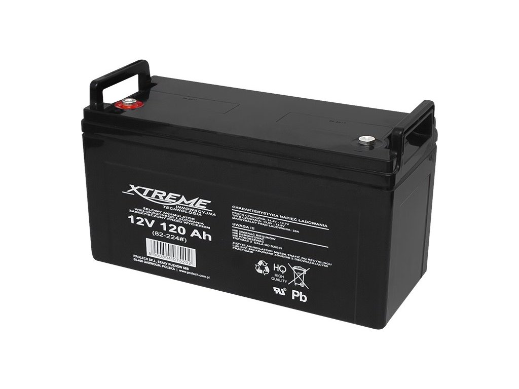 Baterie olověná 12V / 120Ah Xtreme 82-224 gelový akumulátorTato gelová baterie využívá technologii AGM (absorbent Glass Mat).