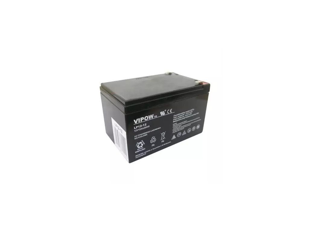 Baterie VIPOW 12V/12Ah akumulátorOlověné hermeticky uzavřené a zcela bezúdržbové akumulátory. Konstrukce těchto akumulátorů umožňuje libovolnou pracovní polohu. Doporučené oblasti použití: systémy UPS, záložní zdroje pro veškeré aplikace EZS a telekomunikace, záložní svítidla a nabíjecí svítilny, výstražná mobilní a signalizační zařízení apod