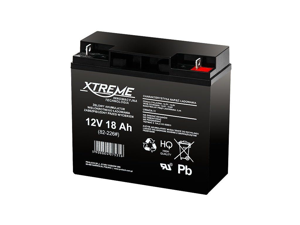 Gelová baterie 12V 18Ah Xtremekategorie : Gelový olověný akumulátor - baterie , bezúdržbový .