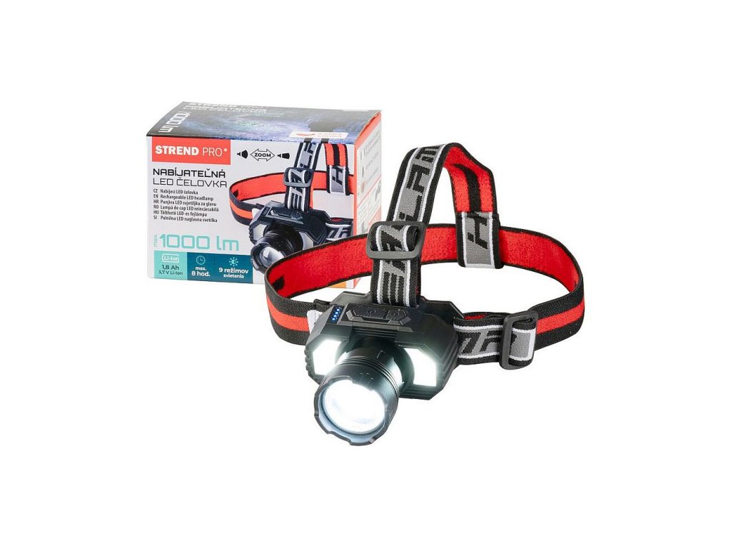Čelovka Headlight XL121807 LED, 1000 lm, ZOOM, 1800 mAh, USB nabíjení
