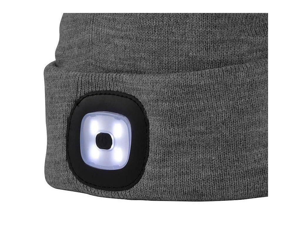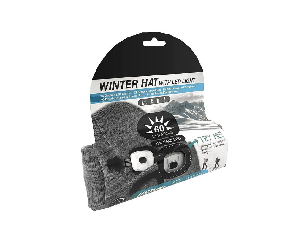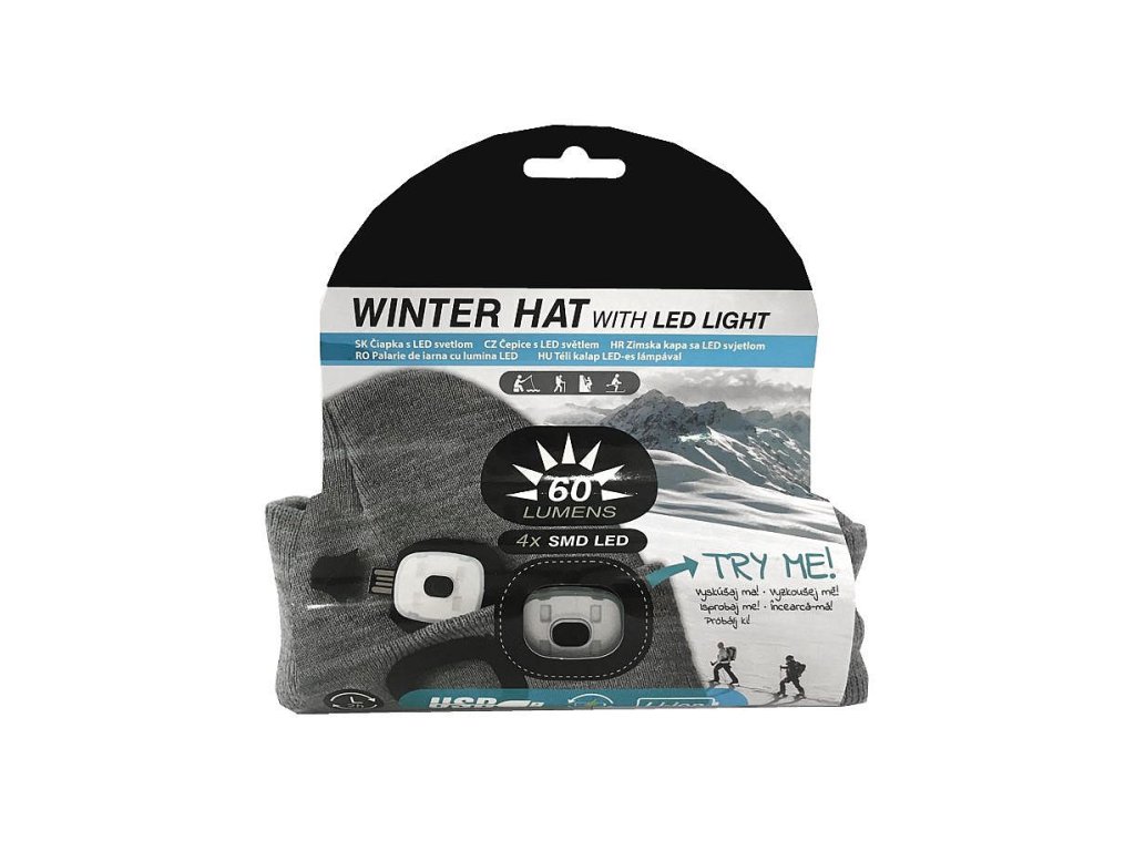 POPIS Pohodlná a teplá čepice do chladného počasí. Univerzální velikost. Nabíjení LED světla pomocí USB portu. 3 stupně intenzity svícení. Možnost praní. SPECIFIKACE Baterie: 3,7 V Li-ion 300 mA Světelný zdroj: 4 x SMD LED Svítivost: 60 lm Doba nabíjení: 3 h Doba svícení: ± 2 h 3 stupně intenzity svícení: 50 / 75 / 100% Materiál: TPR + ABS Rozměry: 63 x 50 mm