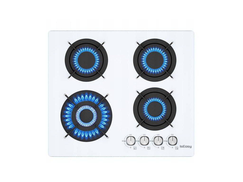 Bezpečné --- Plynová varná deska IsEasy se 4 plameny bílá má termočlánkovou detekci zhasnutí plamene. Skloplynová varná deska IsEasy na zemní plyn automaticky vypne plyn, když není detekován plamen.