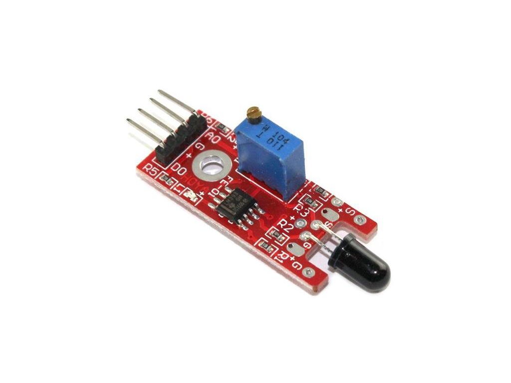 Modul detektoru plamene registruje přítomnost ohně. Funguje na principu detekce infračerveného záření, který oheň emituje. Úhel detekce 60°, nastavitelná citlivost trimrem.