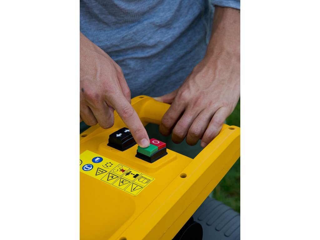Tlačítka pro zapnutí a vypnutí jsou pohodlně umístěna na horní části stroje.