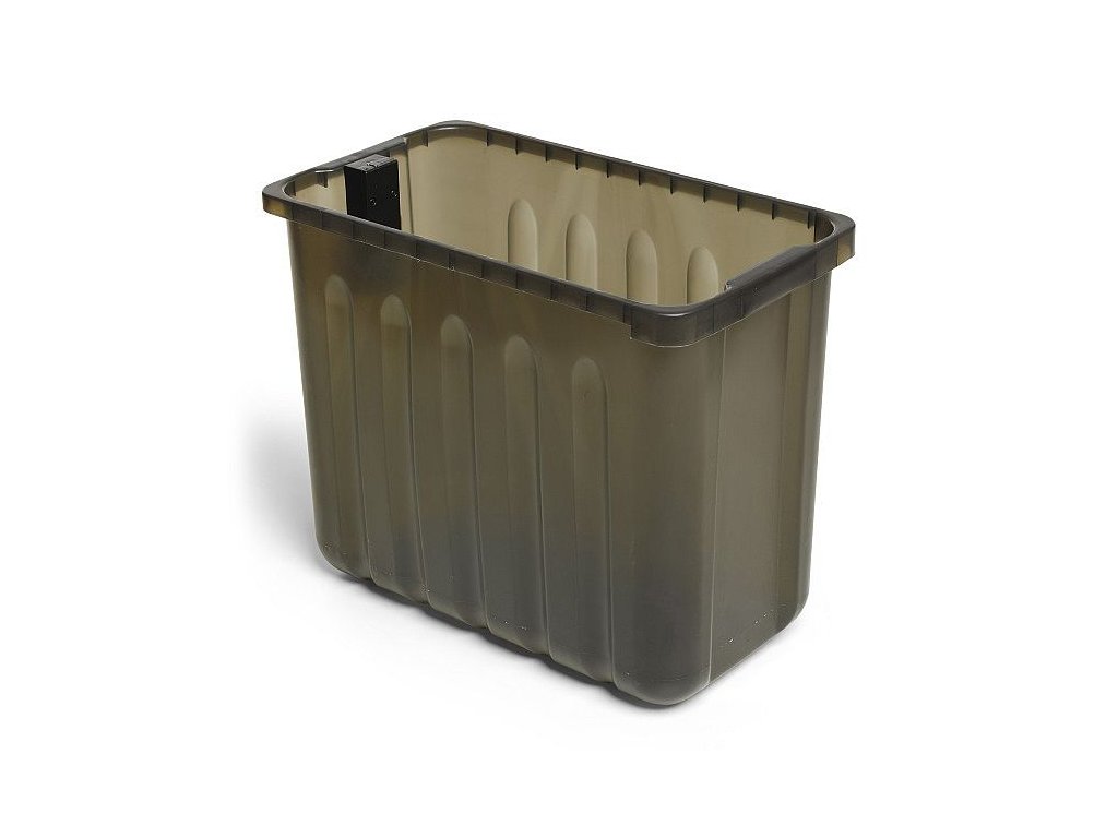 Plastový zásobník pojme až 60 litrů rozdrceného materiálu a je dodáván se strojem.