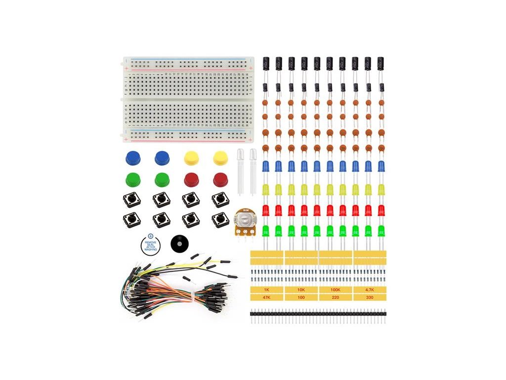 Tato komplexní sada elektronických součástek nabízí vše, co potřebujete pro stavbu, testování a vývoj elektronických obvodů bez nutnosti pájení. Je vhodná pro začátečníky, studenty, hobby konstruktéry i školy. Balení obsahuje prototypovací nepájivou desku, velké množství LED diod, rezistorů, kondenzátorů, spínačů a specializovaných komponent jako jsou bzučáky, potenciometry a RGB LED.