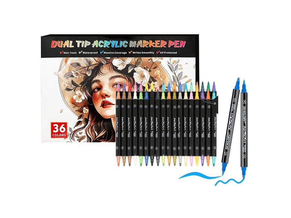 Široká škála barev: Sada obsahuje 36 rozmanitých odstínů, které nabízejí nekonečné kreativní možnosti. Od jednoduchých návrhů až po složitější kompozice, tato sada fixů vám umožní realizovat jakýkoli nápad.