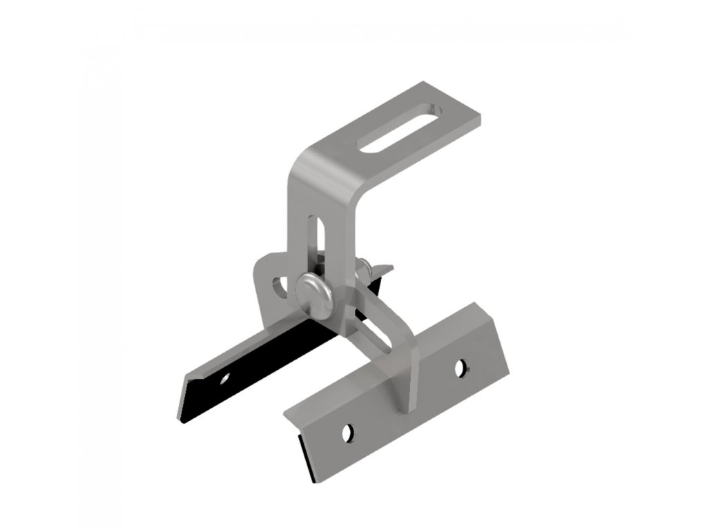 Nastavitelný hák z nerezu A2, pískovaný. Jednoduchá montáž přišroubováním na vlnu trapézového plechu.