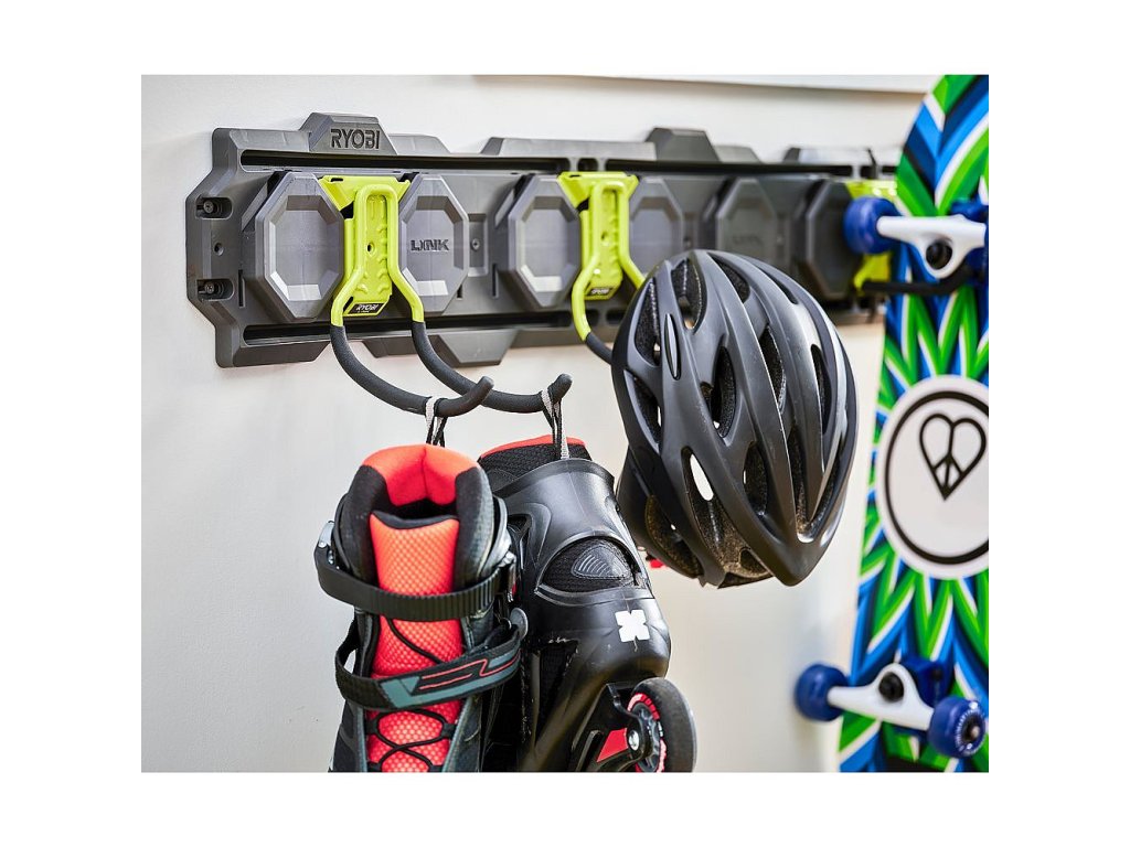POPIS Kompatibilní se systémem RYOBI LINK. Uspořádejte si svůj prostor a přizpůsobte si ho. Odolná ocelová konstrukce s nosností 22,7 kg. Ideální pro hadice, kabely a elektrické prodlužovačky.