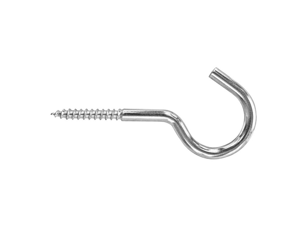 Ocelový háček se závitem do dřeva nebo do hmoždinky.