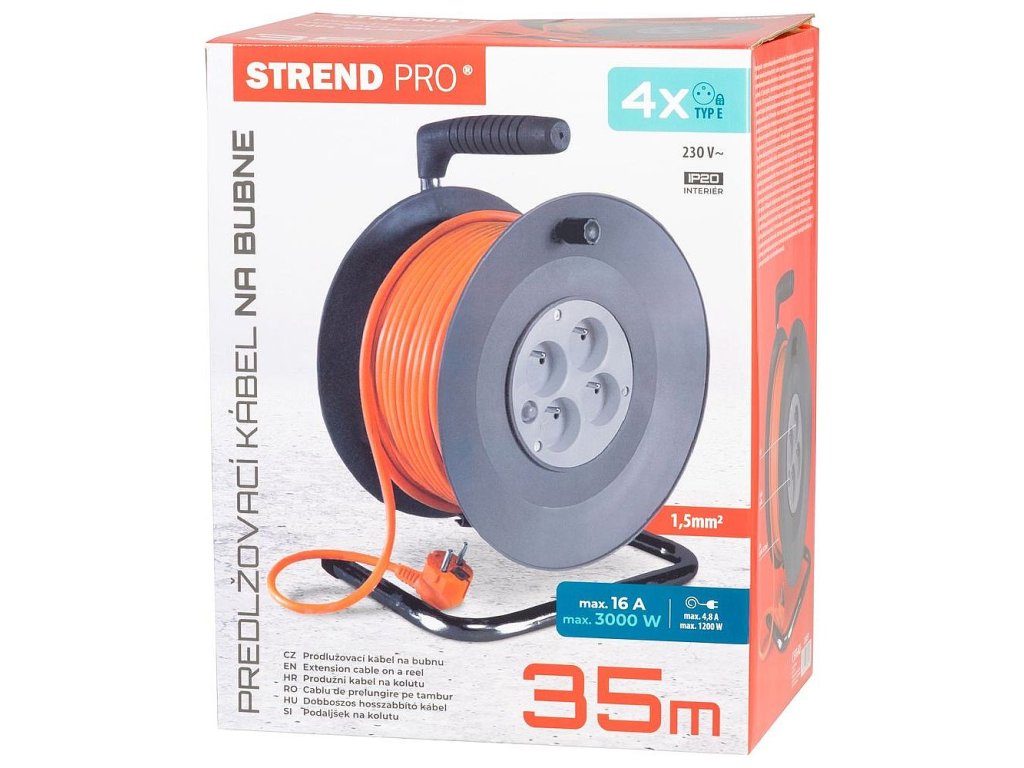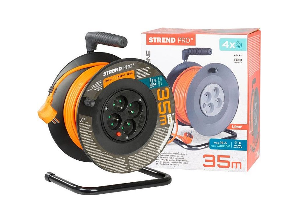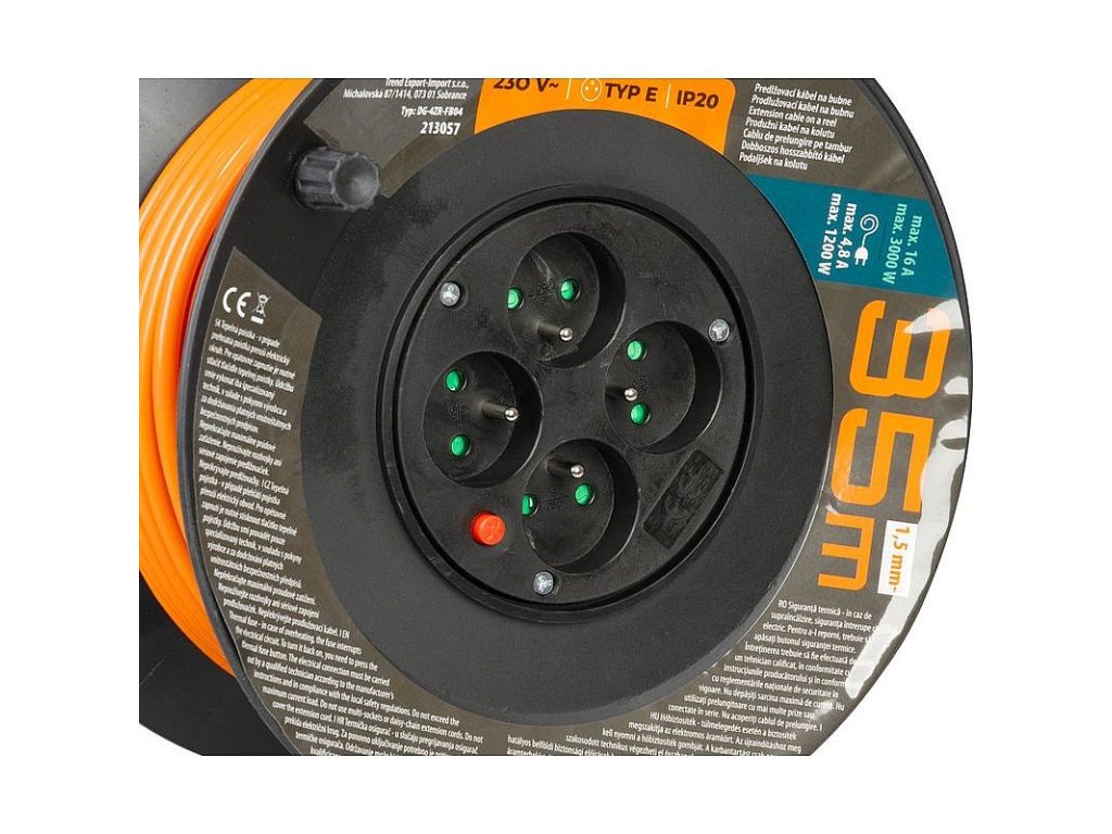 Na bubnu má čtyři zásuvky (230 V), takže můžete napájet více zařízení najednou.