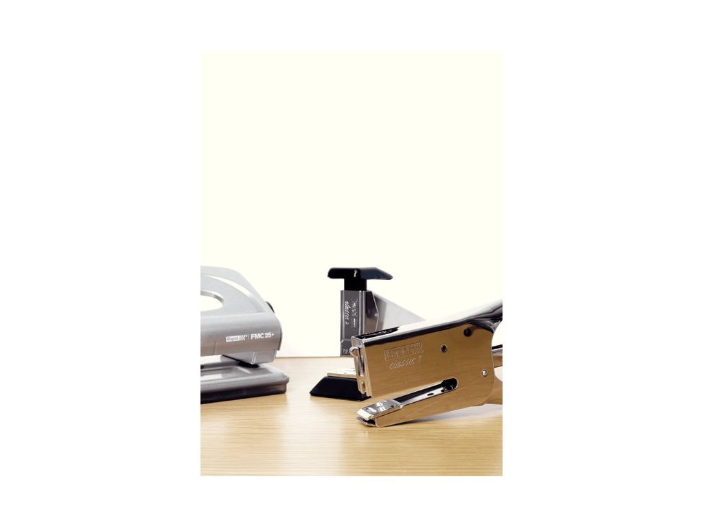 POPIS Nejprodávanější kleště na světě a oblíbené kleště pro květináře. Pěkný klasický design s nastavitelnou kovadlinkou pro sešívání a připínání. Ideální na poštu, do obchodu, domácnosti i kanceláře. Tradiční funkce zpětného vkládání. K dispozici ve 2 verzích pro sešívání - Rapid č. 24 nebo č. 26, 6 - 8 mm. SPECIFIKACE Délka spony: 6 - 8 mm (č. 24) Hloubka vkládání: 56 mm Kapacita: 5 mm / 50 listů papíru (80 g/m2) Materiál: ocel Hmotnost: 340 g