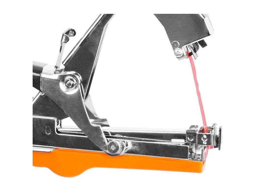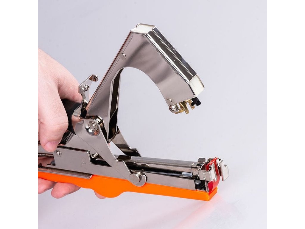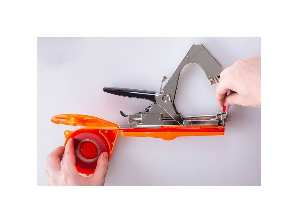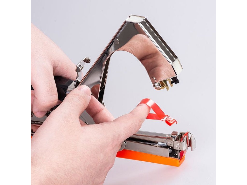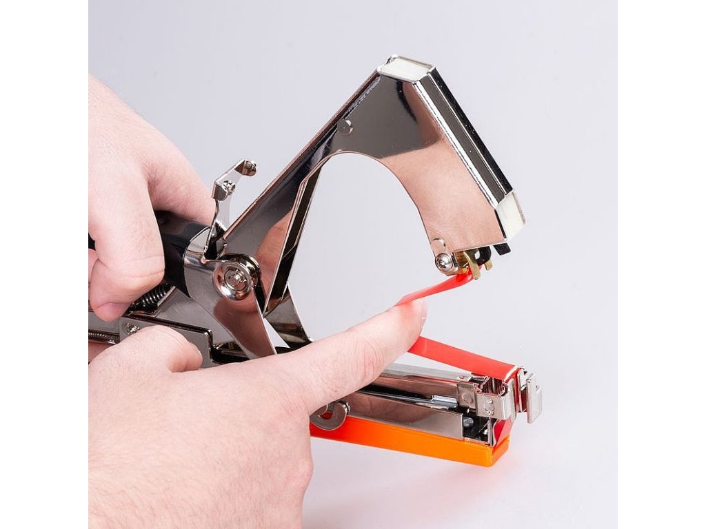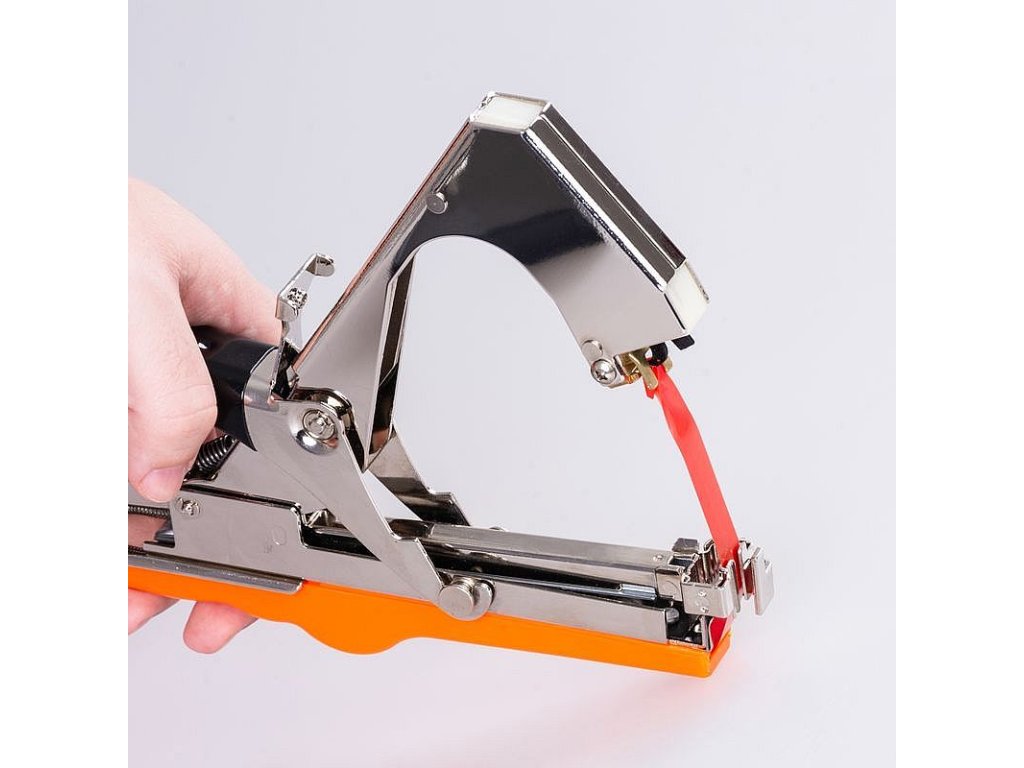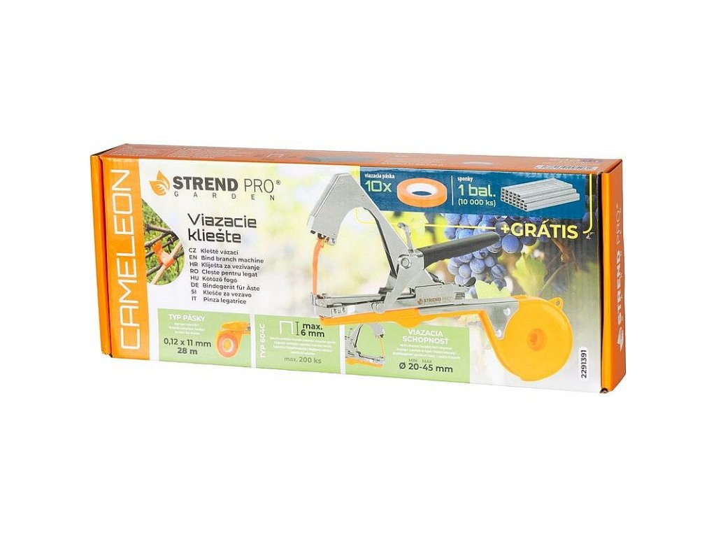 POPISVázací kleště Camelon slouží pro rychlé vázání a připevnění rosltin jako hrozny, rajčata, papriky nebo okurky.Jednoduše stiskněte rukojeť, abyste natáhli pásku mezi čelisti a ta je pak připravena obalit stonek.Druhý stisk pásku sešije a odřízne.SPECIFIKACERozměr kleští: 150x63 mmPáska: 11 mm x 26 mTloušťka pásky: 0,12 mmVázací schopnost: až do průměru 45 mm a tloušťky 20 mmSoučástí balení 10 ks pásek 10 000 ks spon