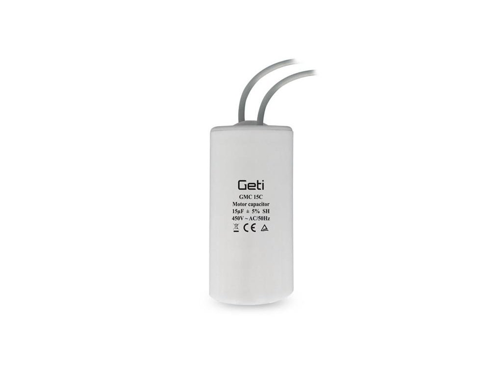 Kondenzátor rozběhový motorový 15uF 450V GETI GMC 15CRozběhový motorový kondenzátor pro čerpadla, sekačky, kompresory, ledničky a jiná zařízení s elektromotorem.