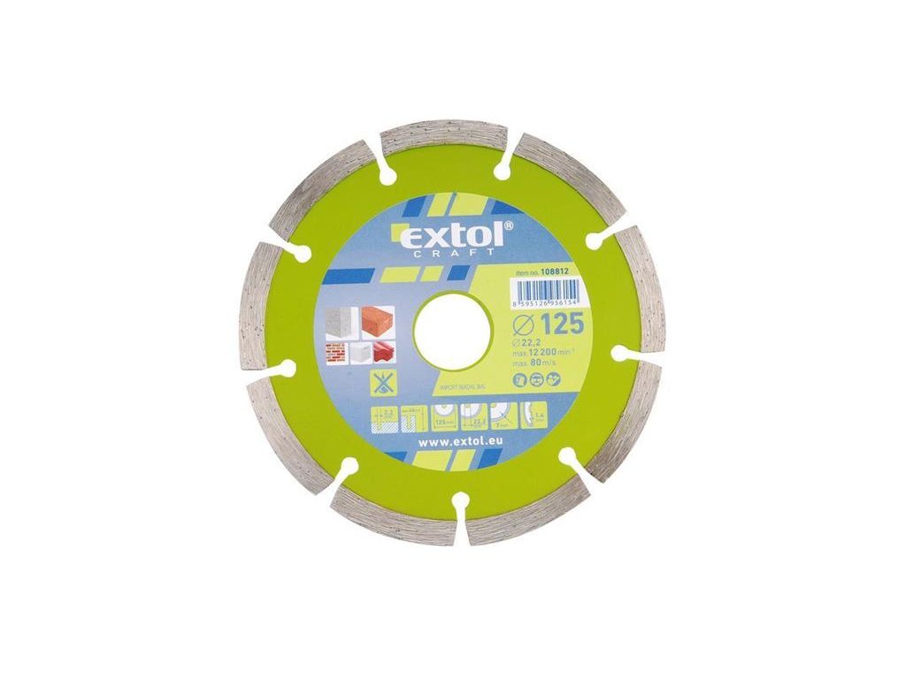 Kotouč diamantový řezný segmentový 115mm EXTOL CRAFT 108811Kvalitní řada diamantových řezných kotoučů pro neprofesionály a domácí kutily za příznivou cenu. Určeno pro suché řezání stavebních materiálů v domácnosti, dílně a na stavbě.