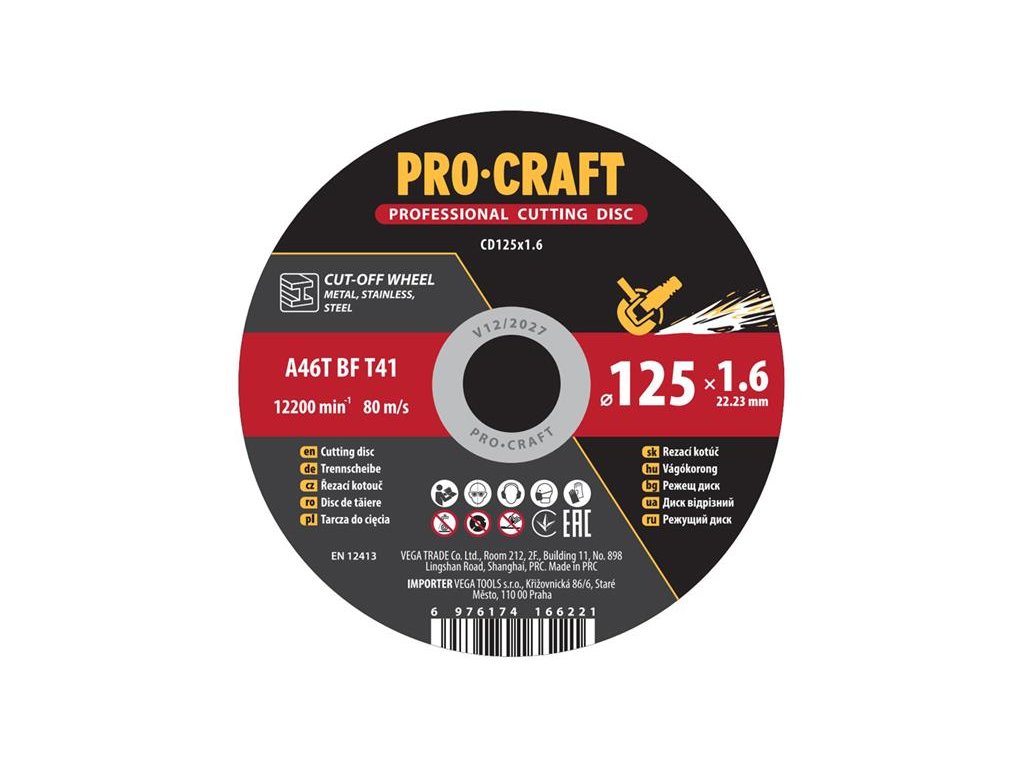 Kotouč řezný PROCRAFT 125x1.6mm
