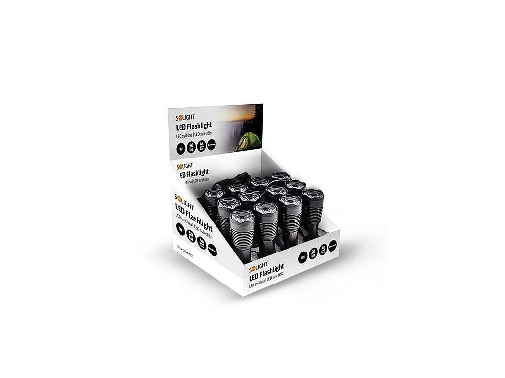 SPECIFIKACE1 W LEDSvětelný tok 50 lumenůČas svícení cca 4 hodHliníkové provedeníPoutko na zápěstí.1x AA (součástí svítilny)Balení: display box 12 ks