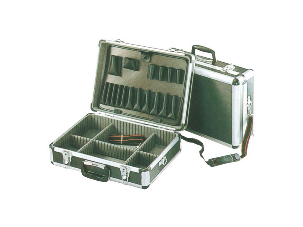 Kufr na nářadí TIPA CT750Uzamykatelný kufr hliníkové konstrukce s vnitřními přepážkami, které se dají libovolně přestavět a tak vytvořit v kufru oddíly různých velikostí. Dále je ve víku kufru sklopná deska, na které jsou oboustranně umístěny kapsy například pro šroubováky, kleště a podobně.