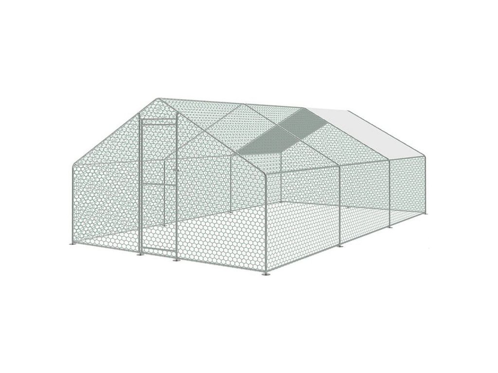 POPISKurník je ideálním řešením pro chov drůbeže. Poskytuje dostatečný prostor, ochranu a komfort, přičemž jeho robustní konstrukce je navržena pro dlouhodobé používání.Prostorná voliéra nabízí dostatek místa pro drůbež.Pevná a odolná konstrukce.Vyrobeno z galvanizované oceli s PVC povrchovou úpravou, která zaručuje odolnost vůči korozi.UV stabilní střecha.Plachta pokrývá jednu třetinu plochy střechy voliéry, poskytující ochranu před sluncem a povětrnostními vlivy.Bezpečné ukotvení.Možnost pevného ukotvení do země pro vyšší stabilitu.Pletivo s jemnými oky.Rozměr oka pletiva je 3 x 4 cm a tloušťka drátu 1 mm, což účinně chrání drůbež před predátory a zajišťuje dobrou cirkulaci vzduchu.SPECIFIKACEMateriál: ocel galvanizovanáPovrchová úprava: PVCRozměry: 300 x 600 x 200 cmRozměry balení: 190 x 29,5 x 16,5 cm