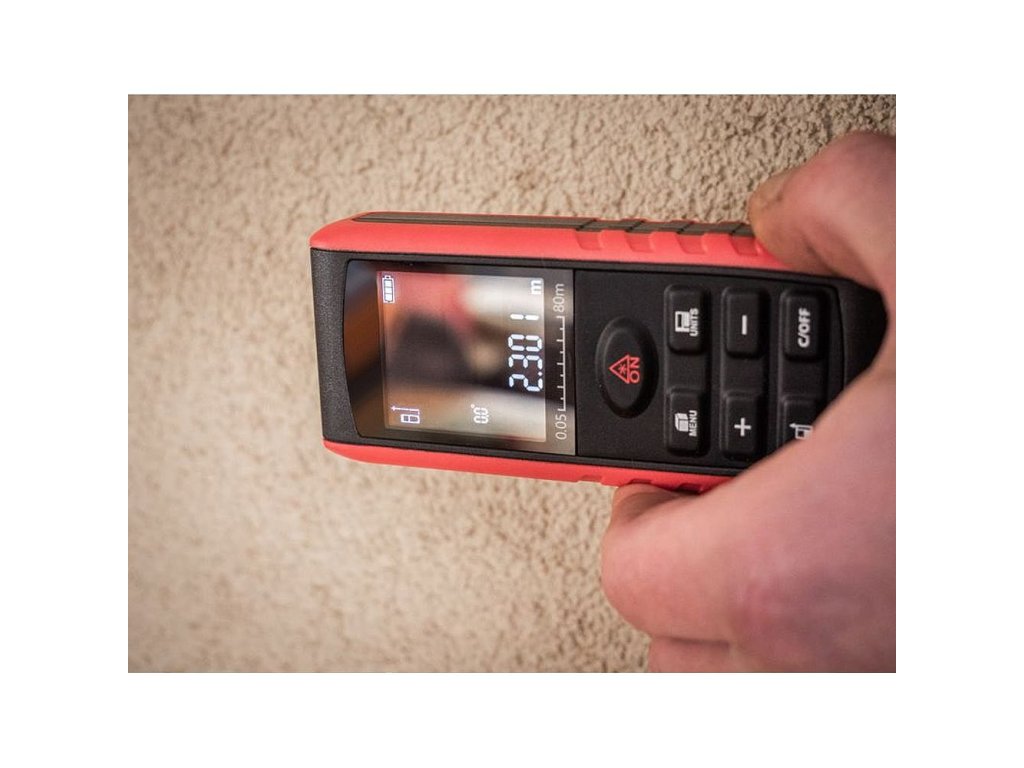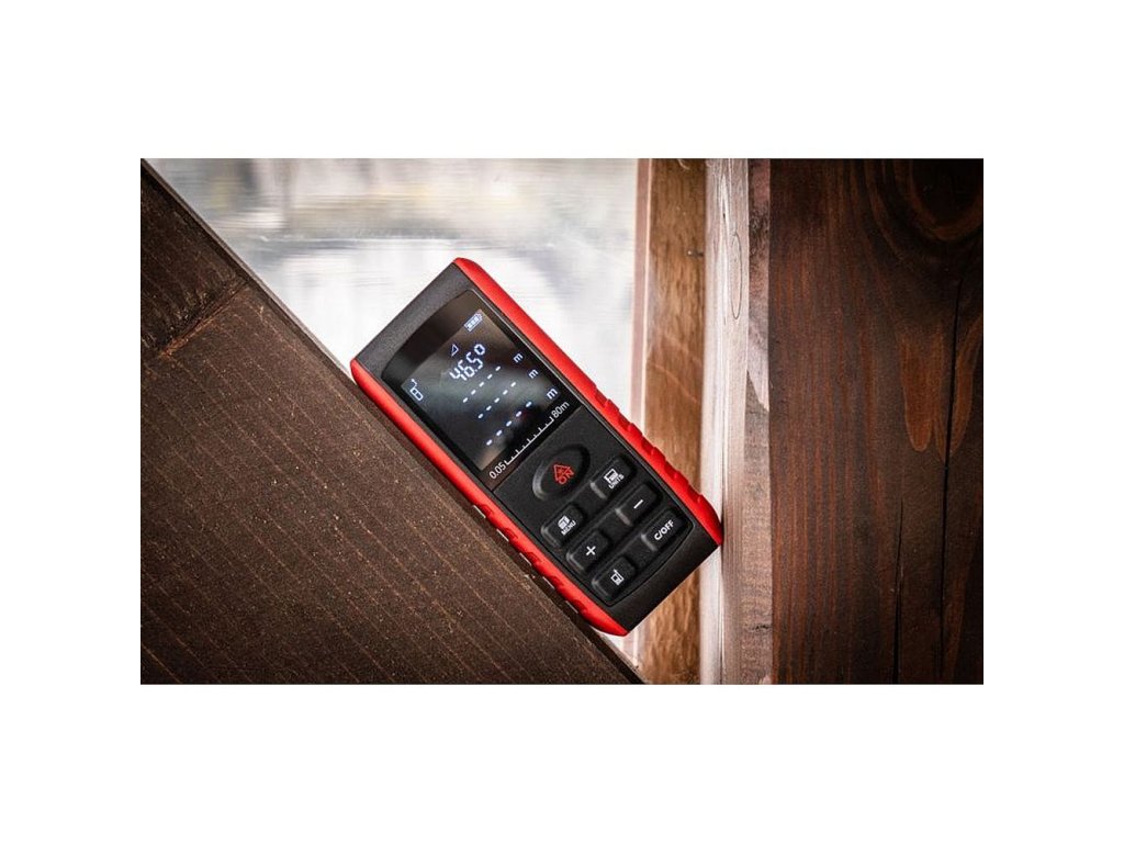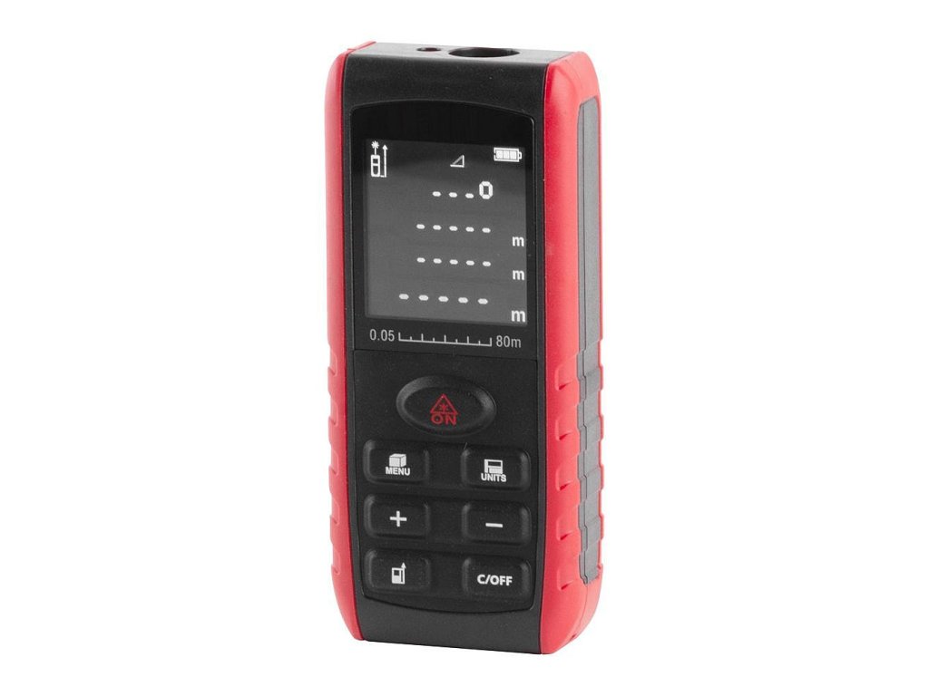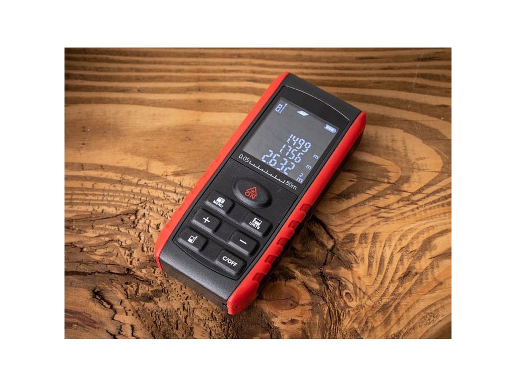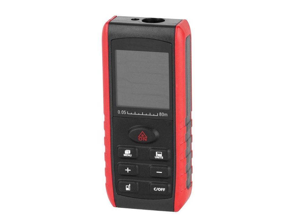 Laserový měřič vzdálenosti je určen k měření vzdáleností, dálek, výšek, odstupů, sklonů, výpočet ploch a objemů. Pokud je měření prováděno za nepříznivých podmínek, například jasné sluneční světlo, měření drsných nebo špatně odrážejících se povrchů, příliš vysoká nebo příliš nízká teplota prostředí, vyskytují se odchylky měření. Laserový měřič poskytuje měřicí rozsah 0.05 m ~ 80 m, rozlišení 1 mm a přesnost ± 1,5 mm. Měřič se vypne automaticky, po 180 sekundách a laser se vypne také automaticky, po 20 sekundách.