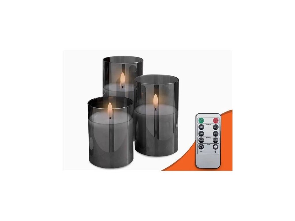 Jedinečné a elegantní dekorativní LED svíčky z kouřového skla jsou perfektním řešením pro každého, kdo chce do svého interiéru vnést trochu kouzla a tepla. Naše sada obsahuje tři svíčky různých výšek a dálkový ovladač, který vám umožní pohodlně a rychle přizpůsobit osvětlení vaší náladě a potřebám.