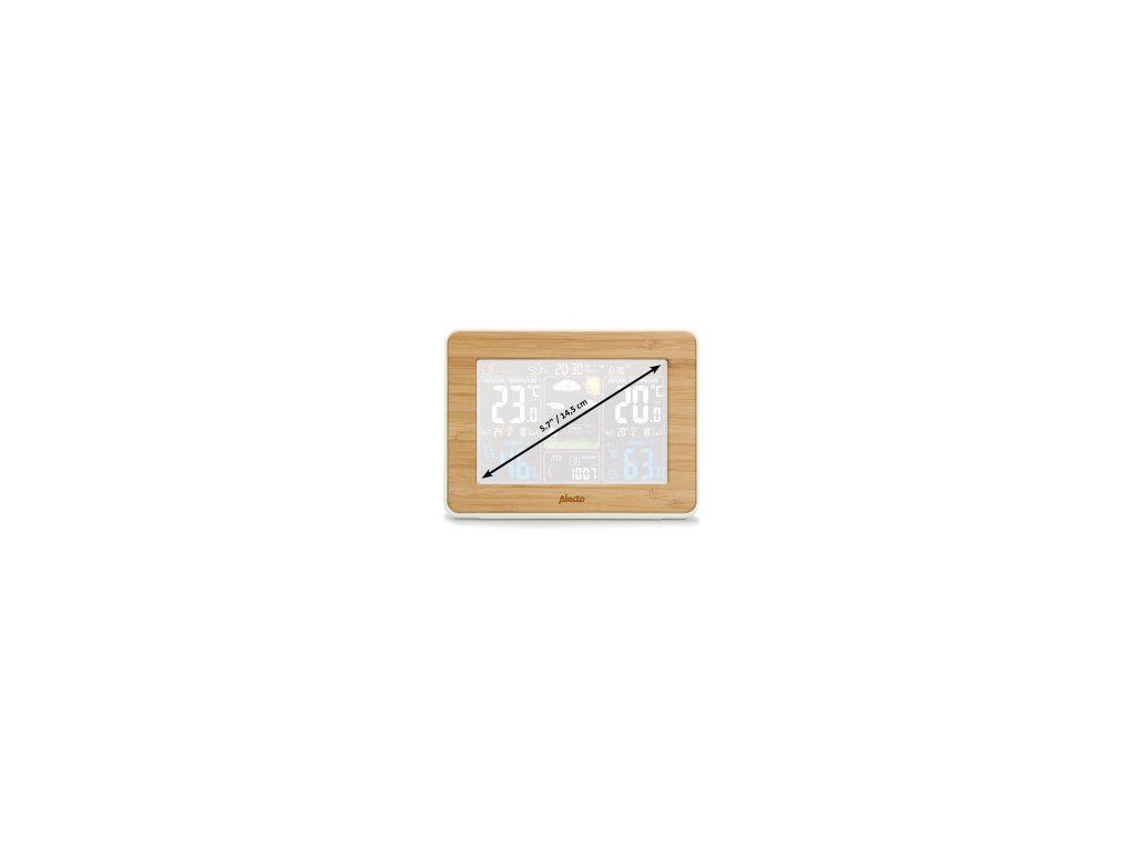 Měření teploty, vlhkosti a srážek pomocí bambusové meteostanice Alecto WS-1560. Tato meteorologická stanice s bezdrátovým venkovním čidlem měří teplotu a vlhkost v interiéru i exteriéru.Tyto údaje se zobrazují na jasně osvětleném displeji s úhlopříčkou 5,7 palce / 14,5 cm. Obsahuje animovanou předpověď počasí se snadno čitelnými ikonami.