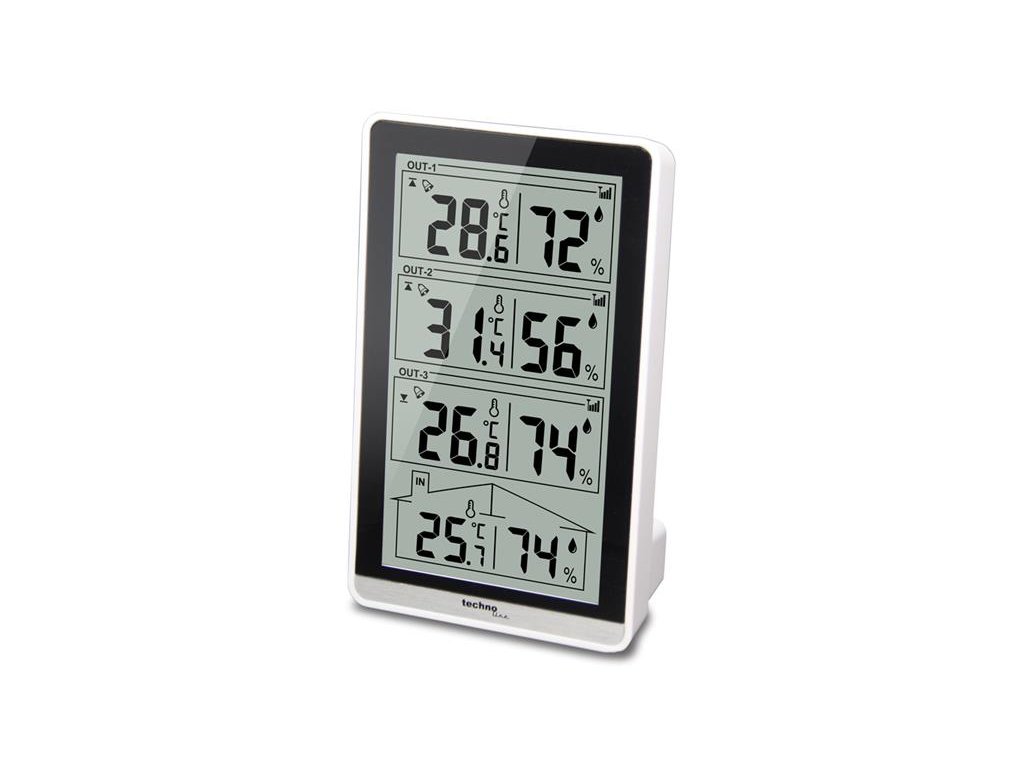 Meteostanice TECHNO LINE WS 7060Digitální meteostanice Techno Line WS 7060 měří vnitřní a venkovní teplotu a vlhkost, a to hned na 4 místech najednou. Součástí jsou 3 bezdrátová čidla, pomocí kterých můžete měřit hodnoty v ostatních prostorách vaší domácnosti, venku, garáži nebo kdekoliv jinde.