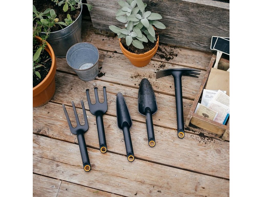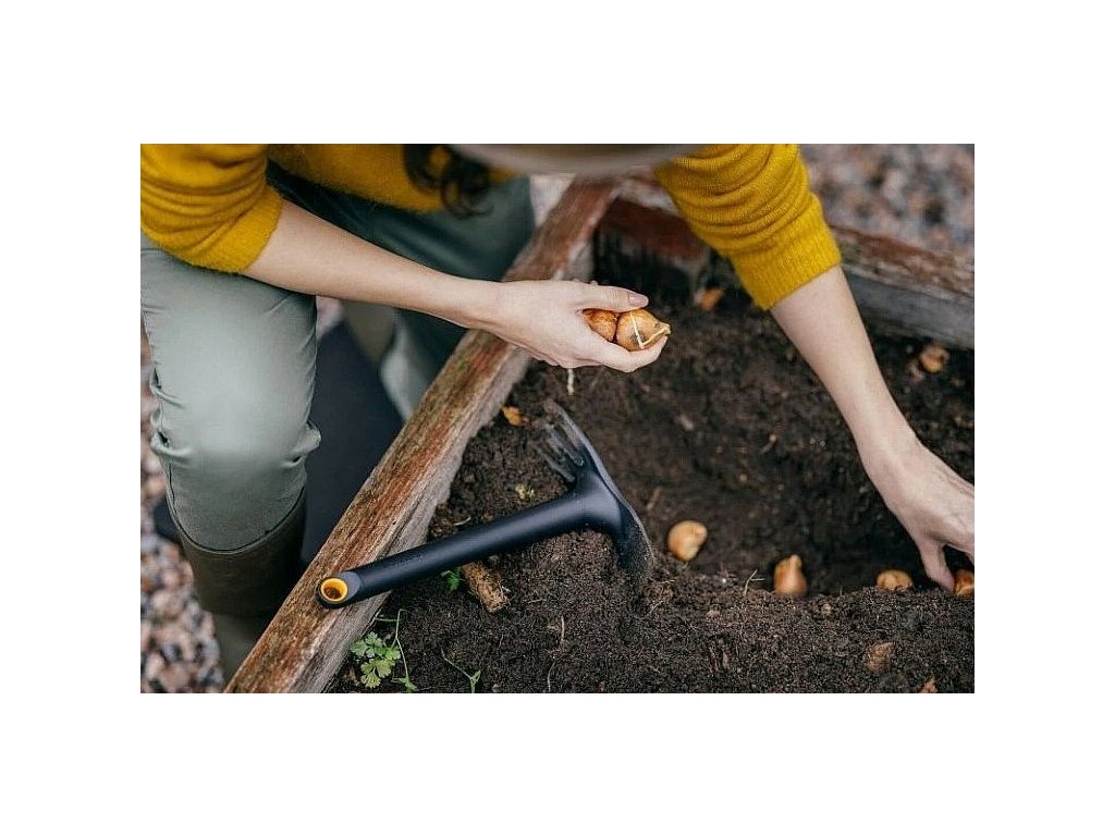 Fiskars Solid malá motyčka je ideálním nástrojem pro jemné zahradní práce, jako je pletí, kypření půdy a sázení.