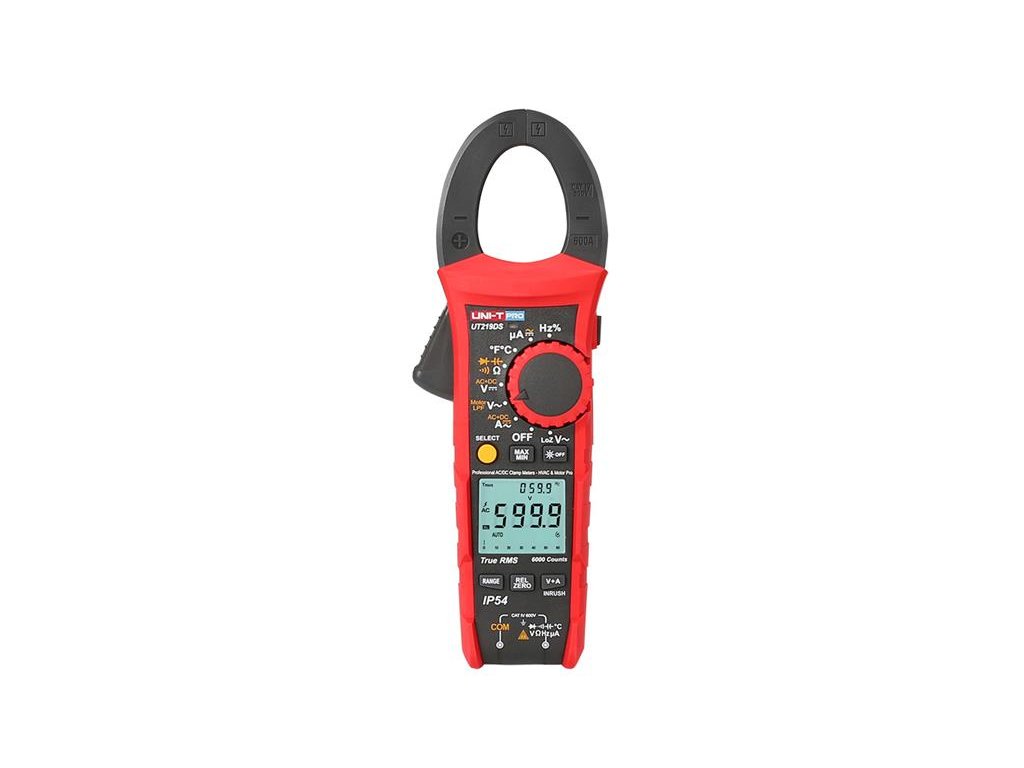 Multimetr UNI-T UT219DS klešťový PRO LineNa tento výrobek poskytujeme 3 roky záruku. Klešťový multimetr UT219DS je velmi odolný přístroj určený pro elektrikáře, opraváře, údržbáře a servisní techniky. Je vhodný pro každodenní použití i v těch nejdrsnějších podmínkách. Přístroj vydrží pád ze 2m a díky stupni krytí IP54 poskytuje vynikajicí ochranu vůči vodě a prachu. Díky TrueRMS můžete přesně měřit i nesymentrické střídavé napětí a proud. Je vhodný k měření střídavého proudu a dalších veličin.UT219M je vybaven funkcí testu motoru , umožnuje testovat sled fází třífázového motoru .