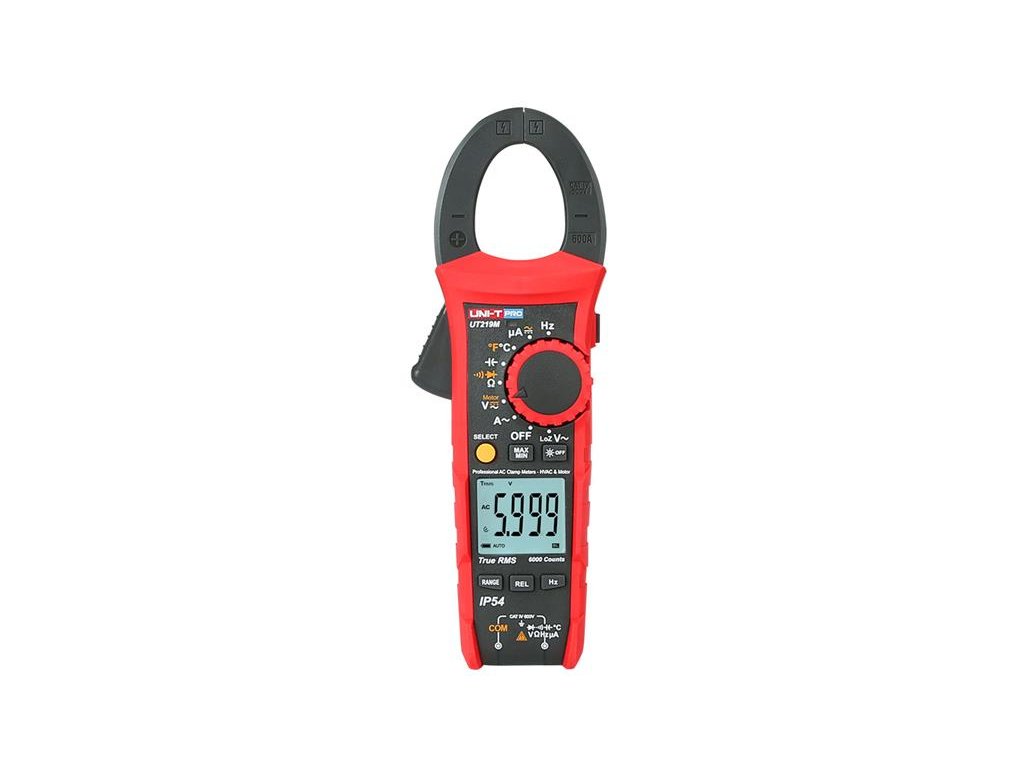 Multimetr UNI-T UT219M klešťový PRO LineNa tento výrobek poskytujeme 3 roky záruku. Klešťový multimetr UT219M je velmi odolný přístroj určený pro elektrikáře, opraváře, údržbáře a servisní techniky. Je vhodný pro každodenní použití i v těch nejdrsnějších podmínkách. Přístroj vydrží pád ze 2m a díky stupni krytí IP54 poskytuje vynikajicí ochranu vůči vodě a prachu. Díky TrueRMS můžete přesně měřit i nesymentrické střídavé napětí a proud. Je vhodný k měření střídavého proudu a dalších veličin.UT219M je vybaven funkcí testu motoru , umožnuje testovat sled fází třífázového motoru .