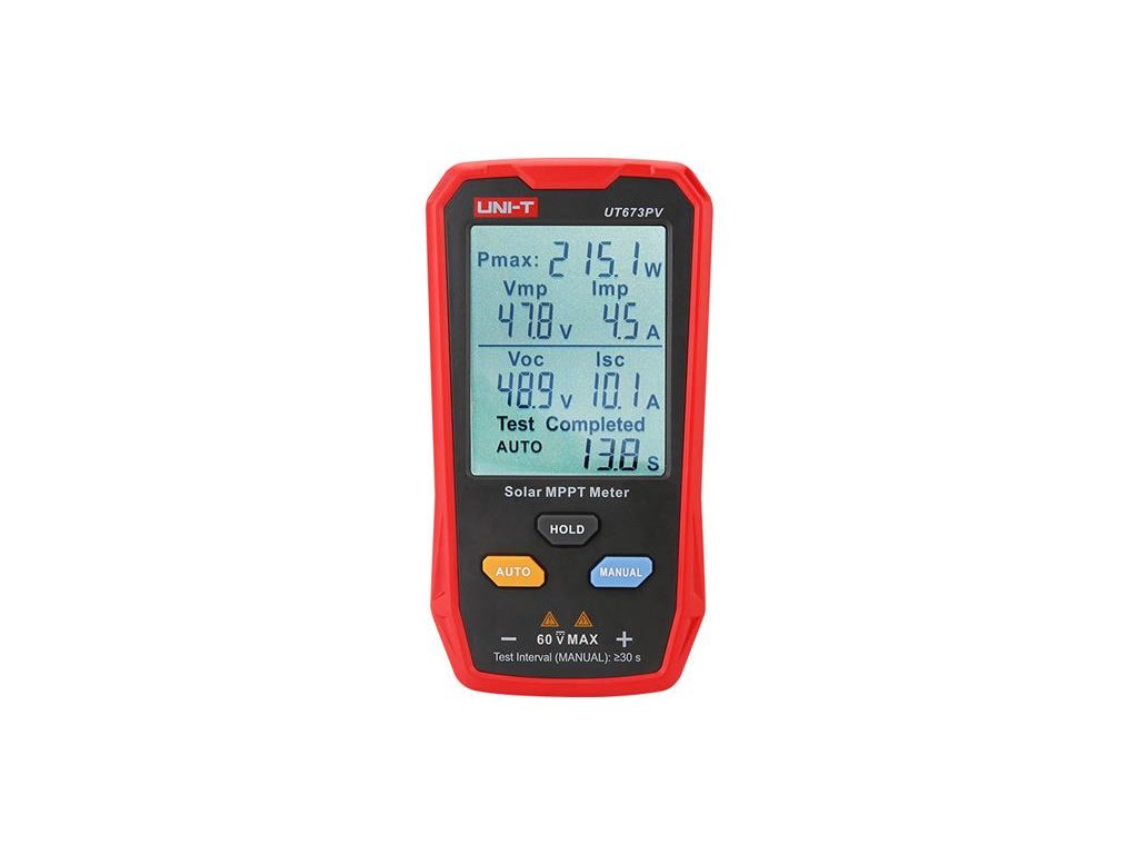 Na tento výrobek poskytujeme 3 roky záruku. Solární měřič MPPT UT673PV dokáže účinně identifikovat jakékoli abnormality v solárních panelech testováním jejich maximálního výkonu, špičkového napětí, špičkového proudu, napětí při otevřeném obvodu a zkratového proudu. Díky velkému displeji a možnosti automatického měření tento přístroj pohodlně zobrazuje všechny výsledky měření současně. Jeho lehká konstrukce umožňuje snadné přenášení, což výrazně zvyšuje efektivitu provozu a údržby. Aplikační oblasti: výrobci solárních panelů, uživatelé solárních panelů, montážní firmy atd.