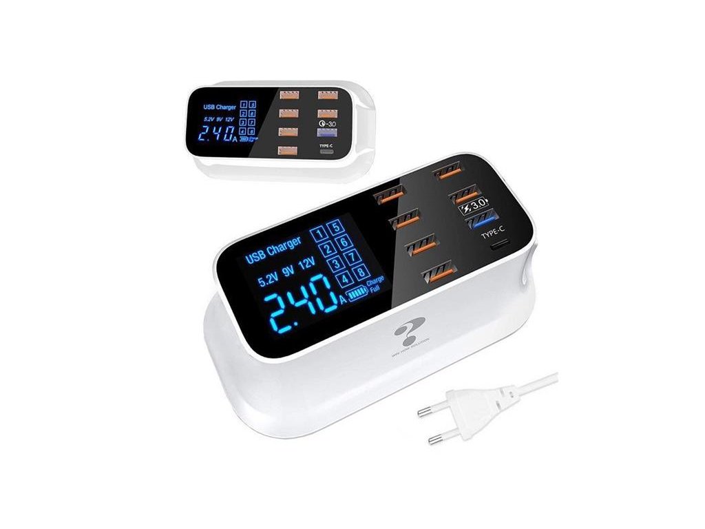Napáječ, nabíječka, 8x USB QC 3.0 TYP C 40W s displejem.