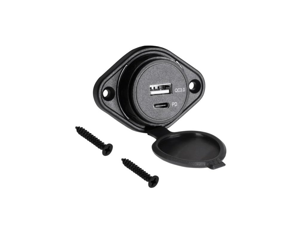 Autonabíječka s USB+USB typu C umožňuje rychlé a pohodlné nabíjení mobilních zařízení v autě. Je navržen pro snadnou montáž a umožňuje rychlé nabíjení dvou zařízení současně, což je ideální na cestách.