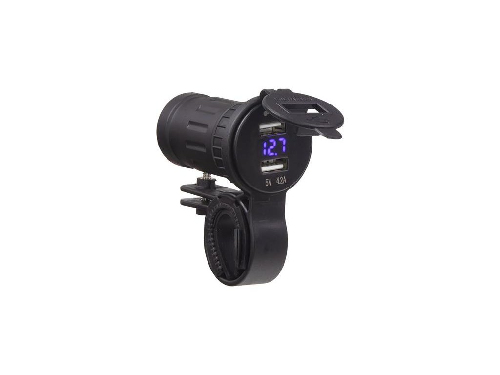 2x USB nabíječka 4,2A s voltmetrem, voděodolná krytka, vhodná např. pro motocykly, čtyřkolky a jiné.