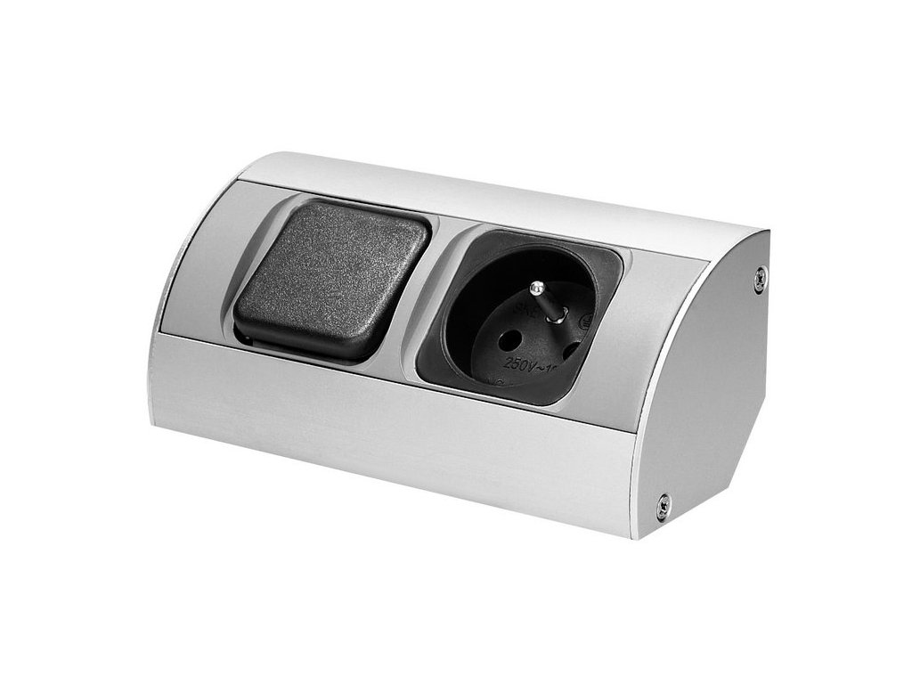 Nábytková zásuvka s vypínačem ORNO OR-AE-1302, rohové pouzdro, barva stříbrná - černá