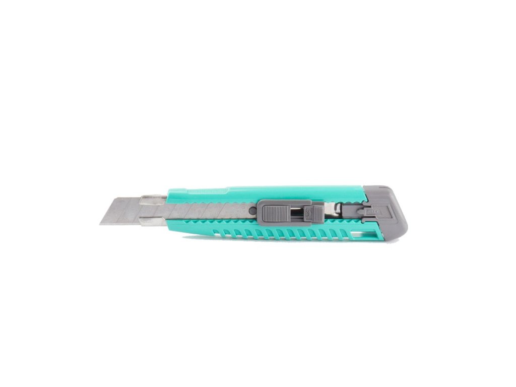 SPECIFIKACEBřit: japonská ocelRukojeť: plastVedení: kovovéOdlamovací břit: 18 mmNáhradní břity: 107026,102360,107004,107005,107100Aretace: tlačítkem