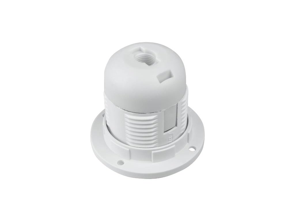 Objímka žárovky BME2701W E27 s přírubou je robustní a funkční osvětlovací příslušenství, které splňuje požadavky různých elektrických instalací. Montážní příruba umožňuje stabilní umístění žárovky, zvyšuje bezpečnost a trvanlivost instalace. Univerzální závit E27 zajišťuje kompatibilitu s většinou žárovek dostupných na trhu.