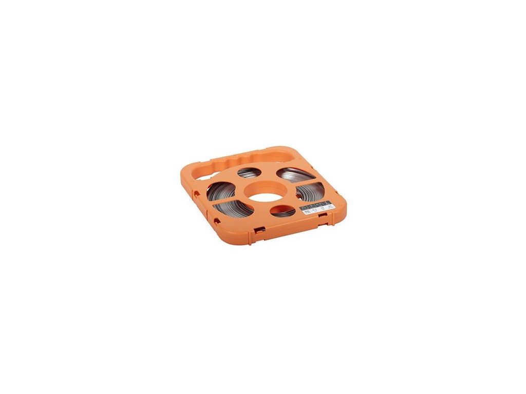 Ocelová páska E88826 se dodává v praktickém plastovém zásobníku, který slouží jako obal. Páska se používá mimo jiné k montáži popruhů, které tvoří vazby, jimiž se upevňují konzoly a rámy ke sloupům. Vyrobeno z nerezové oceli AISI 304.