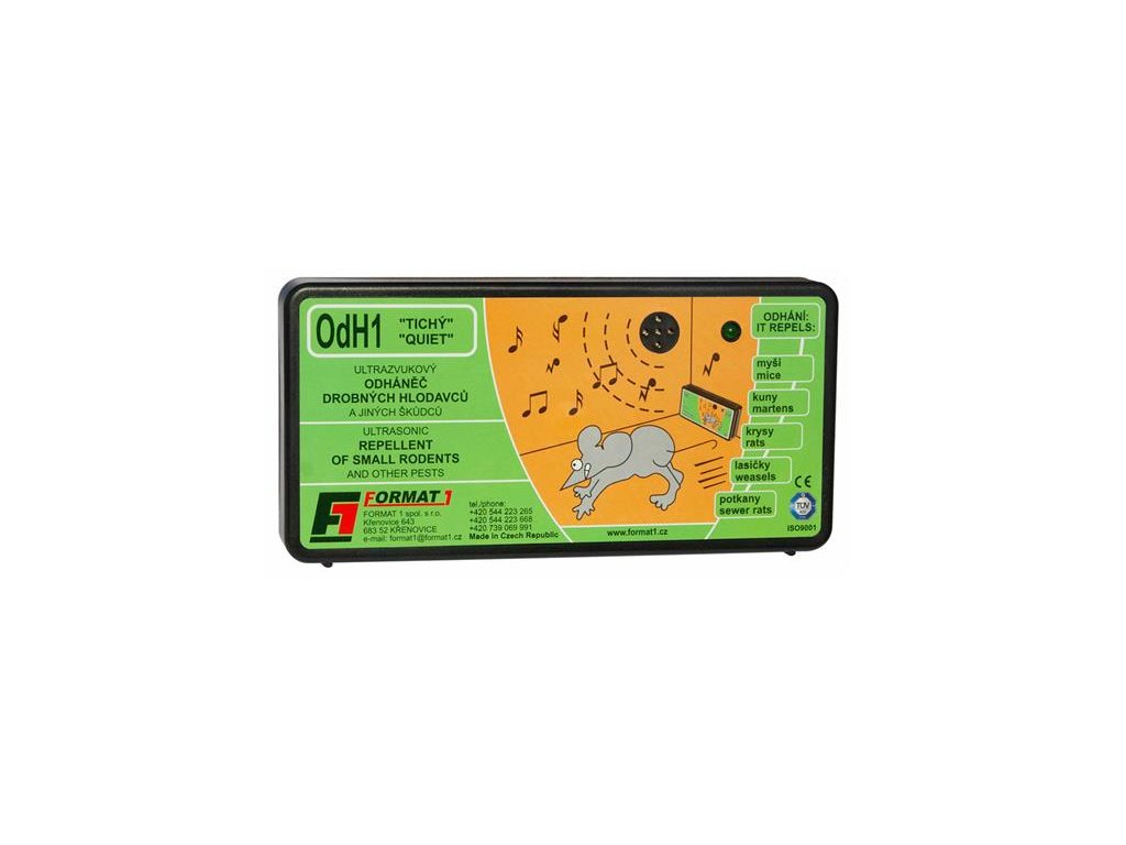 Odpuzovač FORMAT OdH1 tichýUltrazvukový elektronický odháněč myší, kun, krys, lasiček a potkanů. Jedná se o ryze český produkt s dlouholetou tradicí na trhu (od r. 1991) vyráběný přímo u nás ve firmě FORMAT1 spol. s r. o. Spolehlivý, výkonný, za dobu více jak 29 let ověřený mnoha zákazníky. Neškodný jak pro člověka a domácí hospodářská zvířata.