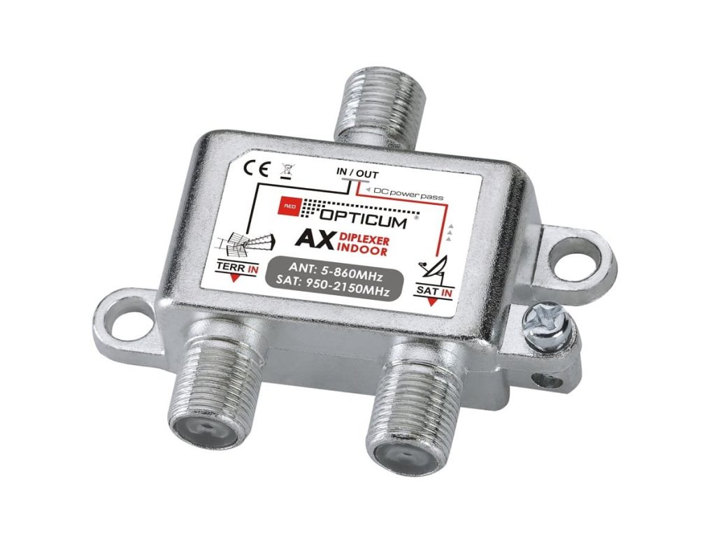 Opticum HQ slučovač Diplexer TV+SAT, F průchozí, vnitřní